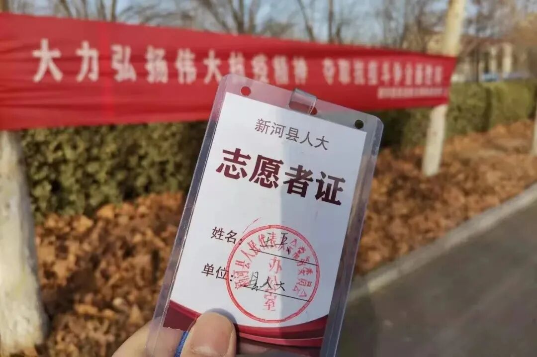 我是建环192王纪龙,在邢台市新河县志愿服务,帮助村委会对过往村民进行体温检测。