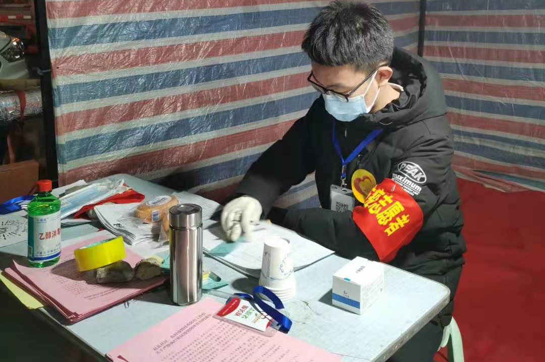 我是电气177班丁国恩,在所在社区指定的防疫隔离点进行值班站岗;跟随社区基层党组织参与社区住户调查工作并协助测量体温,宣传普及健康防疫知识;还负责所在社区的核酸检测人员信息的录入对比。