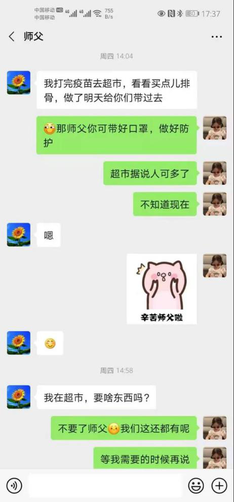 因为疫情,留院研究生的日常生活也受到了影响。老师们爱生如爱子,始终挂念着自己的学生,“吃的够不够?东西全不全?”一句句切实的关心和问候,让每个研究生的心里暖暖的。第一医院为研究生们发放了消毒泡腾片、手部消毒液等防护用品。河北医科大学附属石家庄市第一医院教学处的老师们每天为临床实习的研究生送上免费的午餐和晚餐。