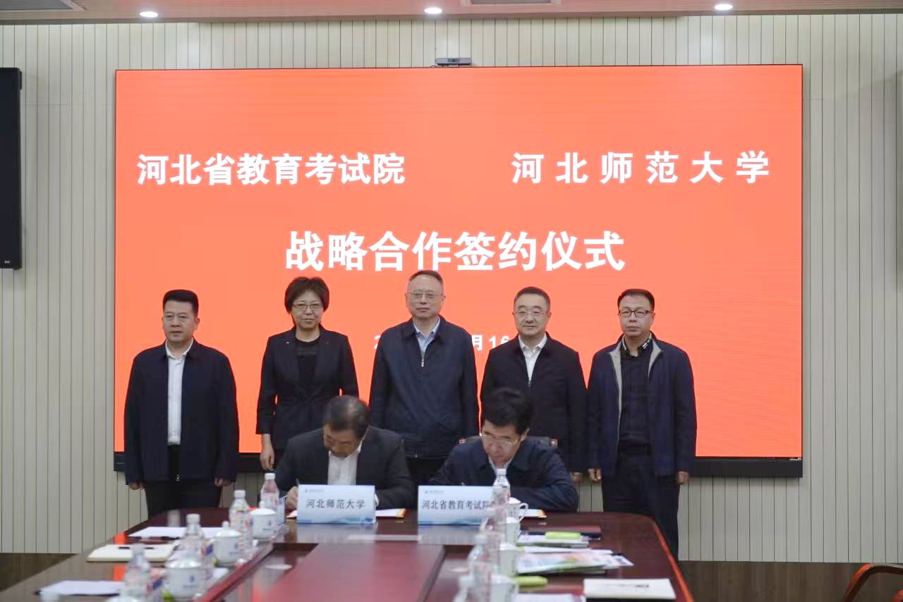 签约暨揭牌仪式由河北师范大学党委常委、副校长付建军主持。河北省教育考试院党委副书记郭立森,河北师范大学党委副书记、校长刘敬泽出席会议,河北省教育考试院、河北师范大学有关部门负责同志参加会议。