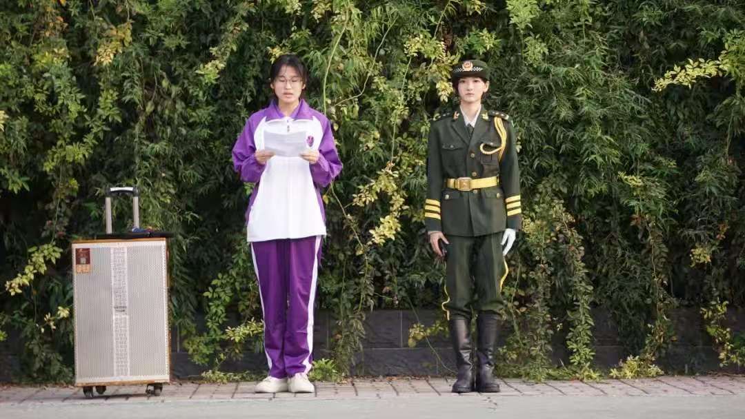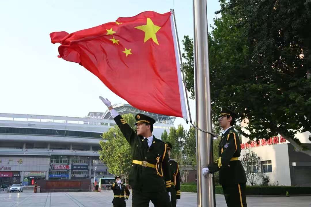 作为一名国旗扛旗手,当我肩扛五星红旗走向升旗台时,我感到无比光荣。目光所至皆为华夏,五星闪耀皆为信仰,祖国是我们心中永远的灯塔;热爱祖国是我们永远不变的信仰,祝祖国国泰民安、繁荣富强!