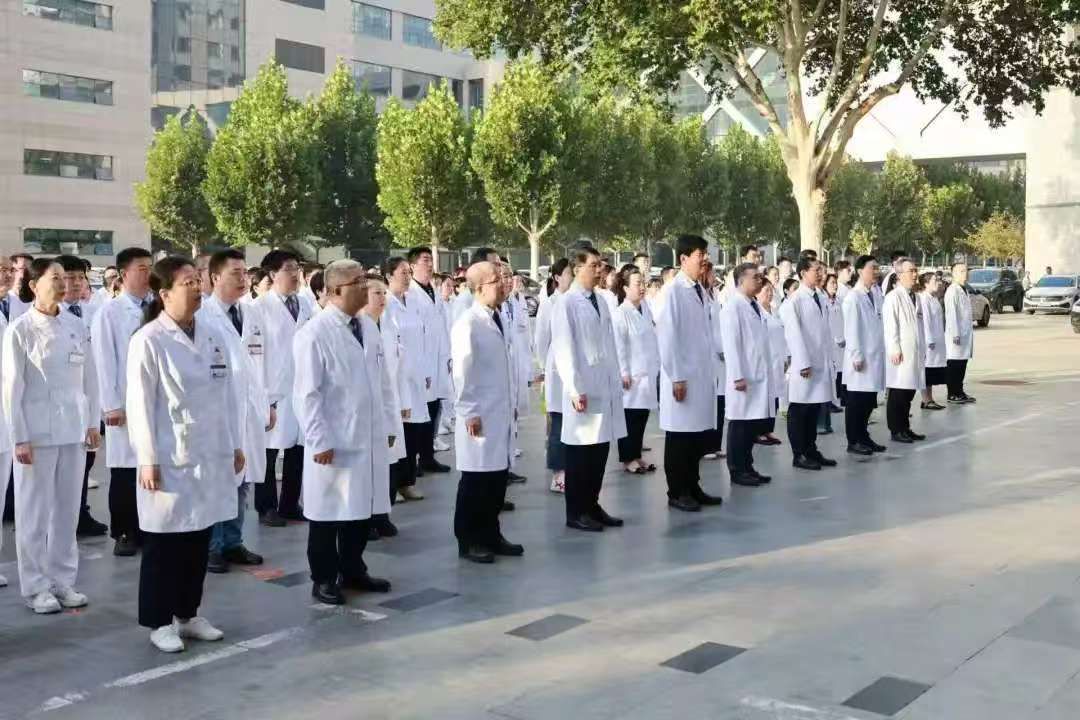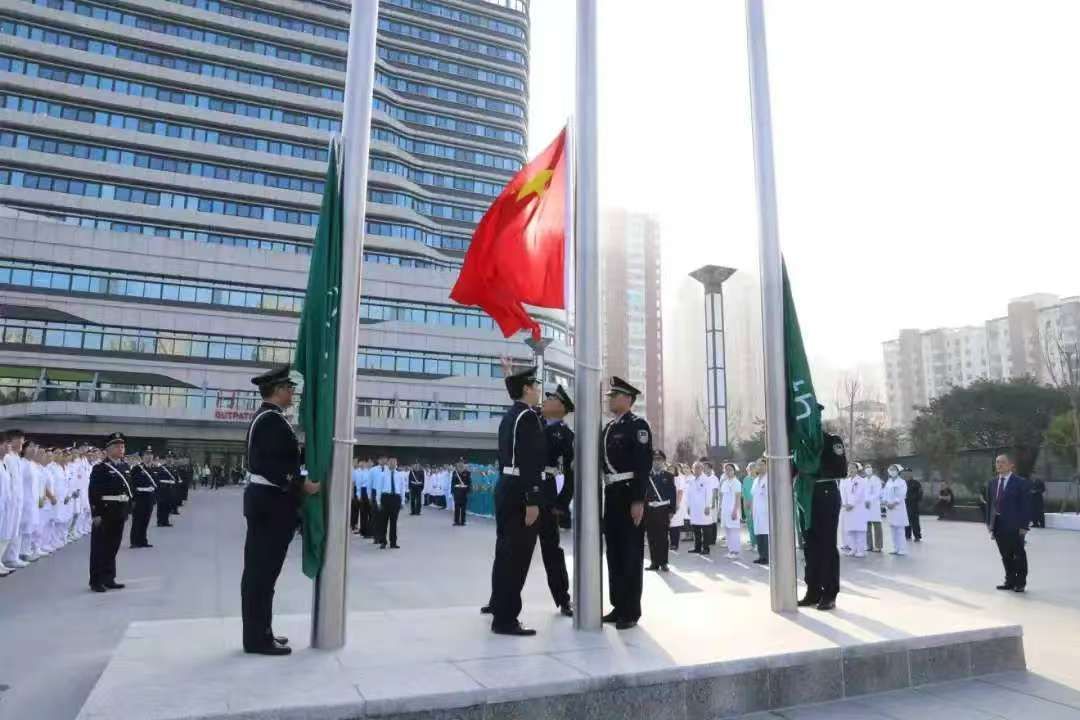 学校各直属医院也举行了升国旗仪式,共庆伟大祖国76岁华诞。