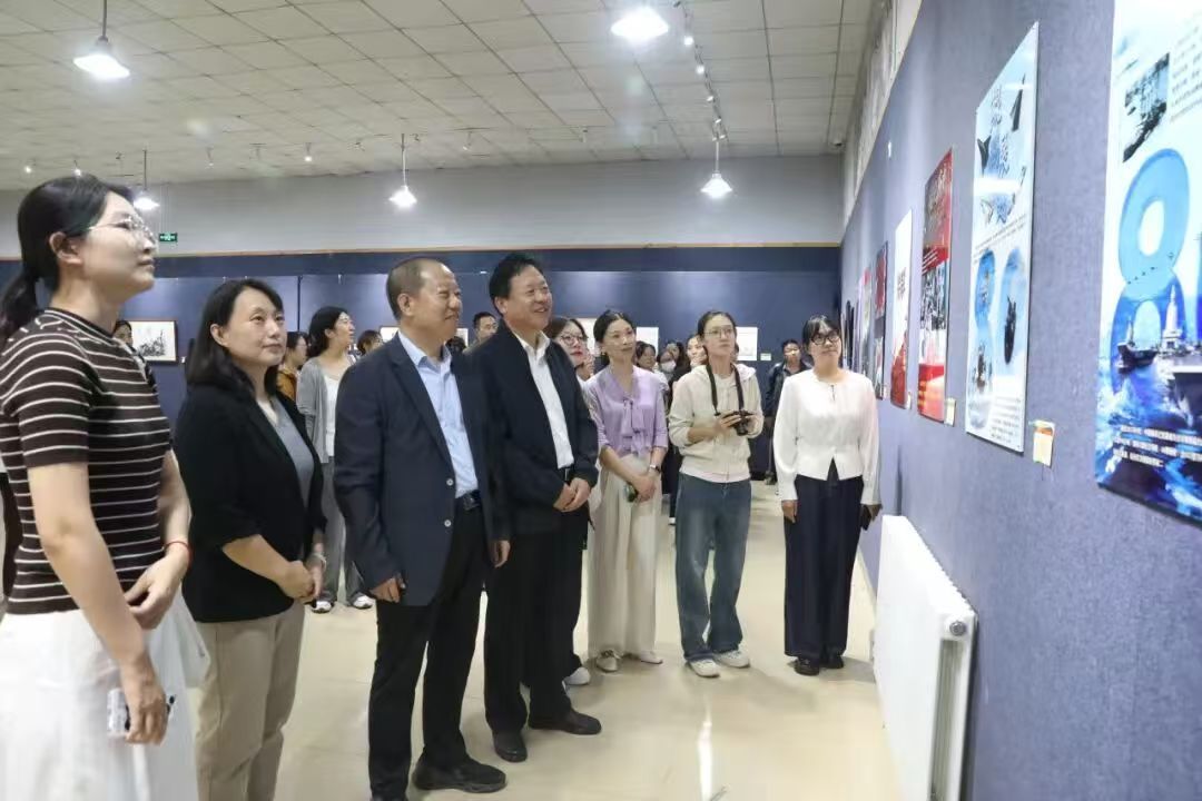 铭记历史,祝福祖国。在举国上下隆重纪念中国人民抗日战争暨世界反法西斯战争胜利80周年,庆祝中华人民共和国成立76周年之际,河北科技师范学院师生书画摄影主题作品展分别在线上和线下举办。学校领导孙政、张明莉、王松、蒋爱林、杨越冬、冯瑞银、刘荣昌、郑新、马爱林和全校师生员工分别通过线上和线下的方式参观了展览。