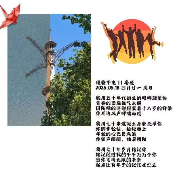 比如,历史建筑类图文。创作聚焦校内存量历史建筑,如以跳伞塔仰拍构图和光影塑造,具象呈现学校六十余载办学历史厚重积淀,而文字则以独特视角,借塔之“眼眸”“身躯”“岁月”,串联发展脉络,校园的悠久历史与学子的成长青春相互交织,让建筑成为见证岁月传承、记录青春足迹的生动载体。