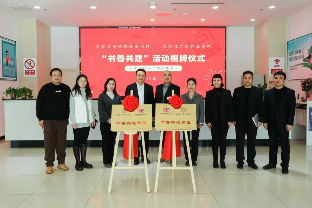 11月20日上午,书香润校园・馆校共育人——石家庄工商职业学院与石家庄市桥西区图书馆“书香共建单位”揭牌仪式在桥西区图书馆举行。石家庄市桥西区文化广电体育和旅游局党组书记李英涛、石家庄工商职业学院副院长张松、桥西区图书馆和学院图书馆、校企合作办公室相关负责人以及师生代表参加此次活动。