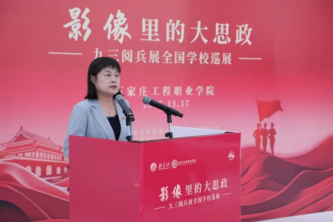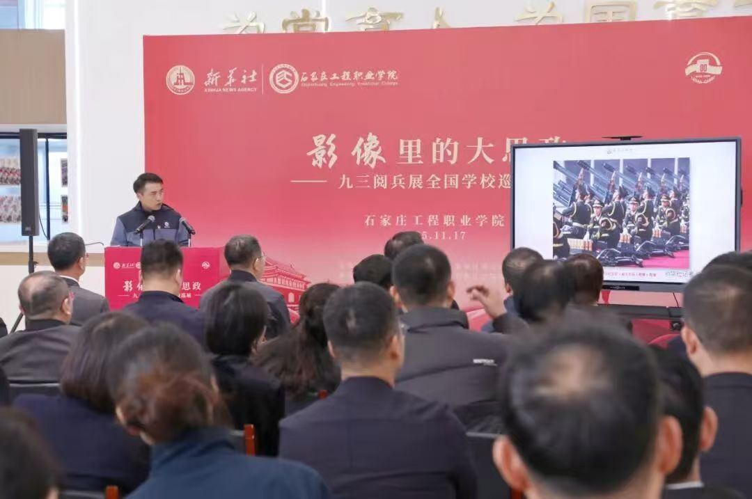 “铭记历史、缅怀先烈、珍爱和平、开创未来”。启幕仪式上,石家庄工程职业学院党委书记米玲在致辞中指出,本次巡展是新华社权威影像资源与高校思政教育深度融合的创新实践。她介绍,2025年9月3日,纪念中国人民抗日战争暨世界反法西斯战争胜利80周年大会隆重举行,新华社作为“国家摄影队”播发现场照片5000余张,生动记录了国之大典的庄严与磅礴。而本次展览精选其中100张经典作品,让师生在光影之中触摸历史温度,在视觉震撼中厚植家国情怀。