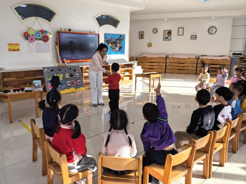 认识情绪、表达情绪、管理情绪三大核心环节层层递进、趣味十足。师生共同打造“情绪杂货铺”互动场景,通过色彩卡片、实物道具陈列与表情模仿游戏,引导幼儿在沉浸式体验中识别自身与他人的情绪;“情绪大冒险”活动以情绪闯关任务为载体,借助专属表达模板,鼓励孩子们大胆倾诉内心感受,提升情绪表达能力;“我的情绪小怪兽”手指操则将不同情绪的调节方法融入简单易学的肢体动作与口诀中,让孩子们在欢快的节奏里轻松掌握情绪管理小技巧,全程以幼儿喜闻乐见的方式,完成了从情绪认知到实践运用的完整引导。