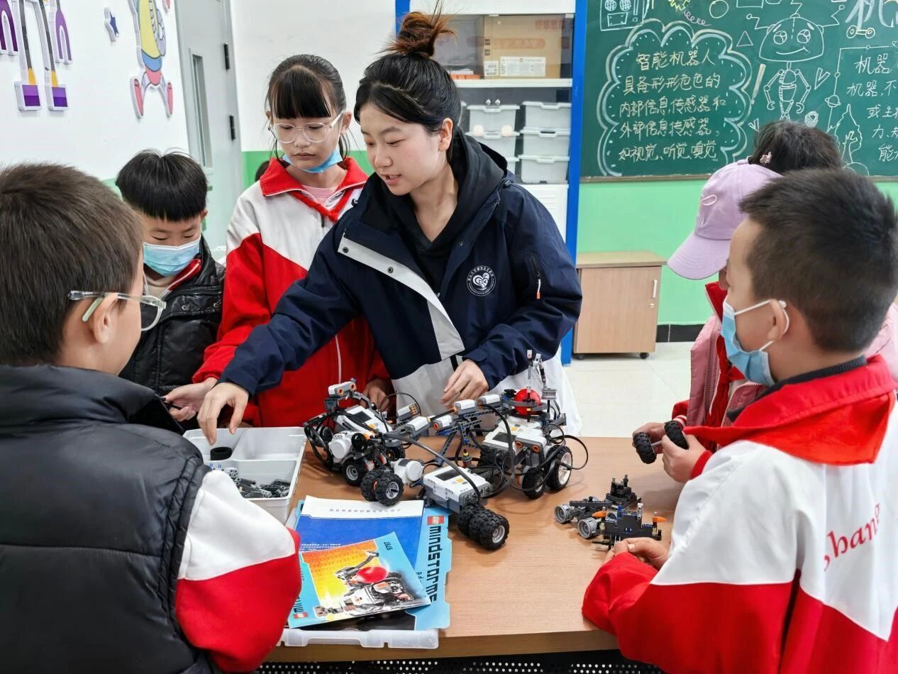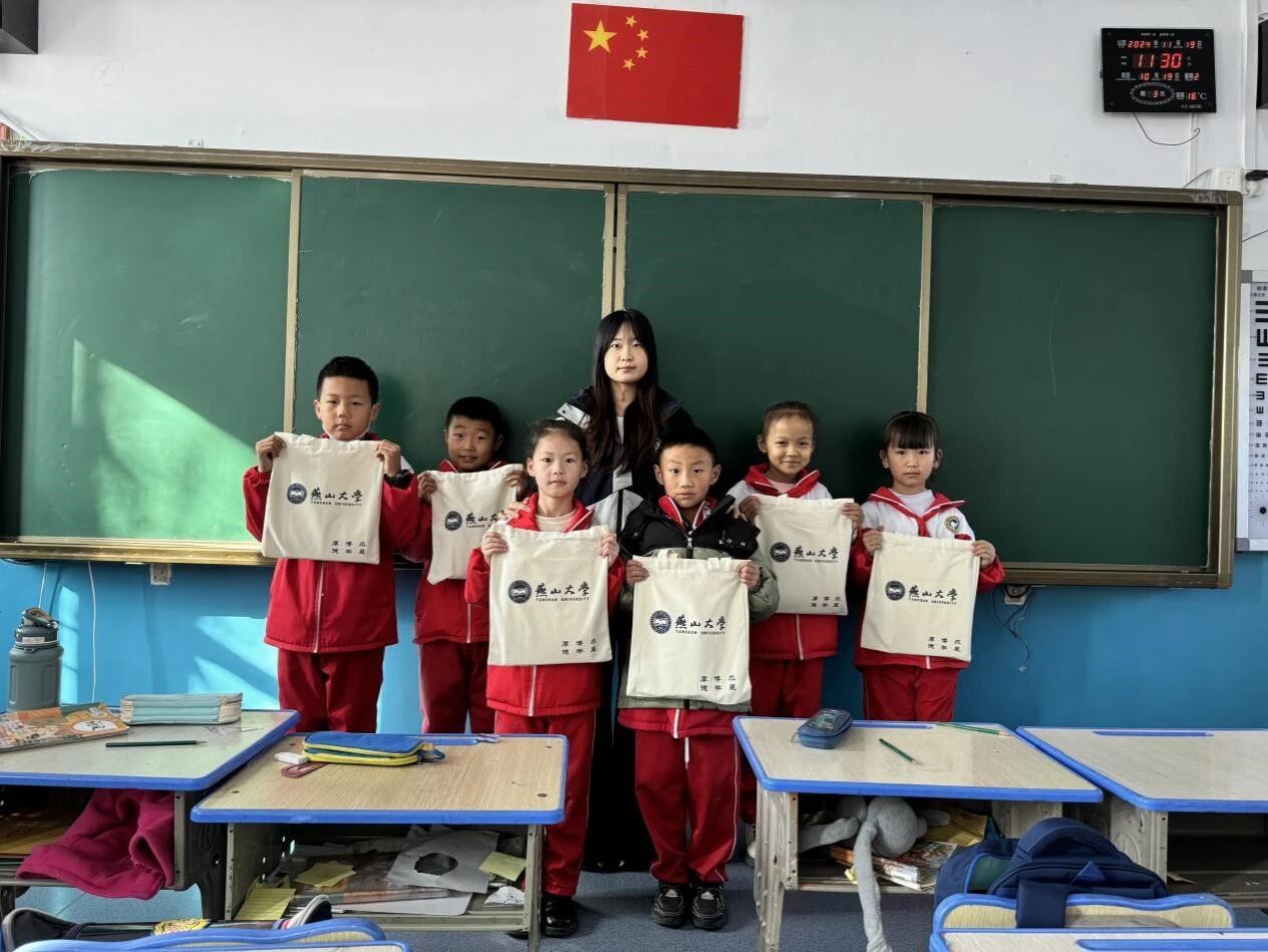 在燕山大学与长江路小学联合举行捐赠仪式时,兰老师穿着印有“燕山大学研究生支教团”的冲锋衣为学生发放学习用品,他们一眨一眨的眼睛像星星,他们向她保证一定会努力学习考上燕山大学。