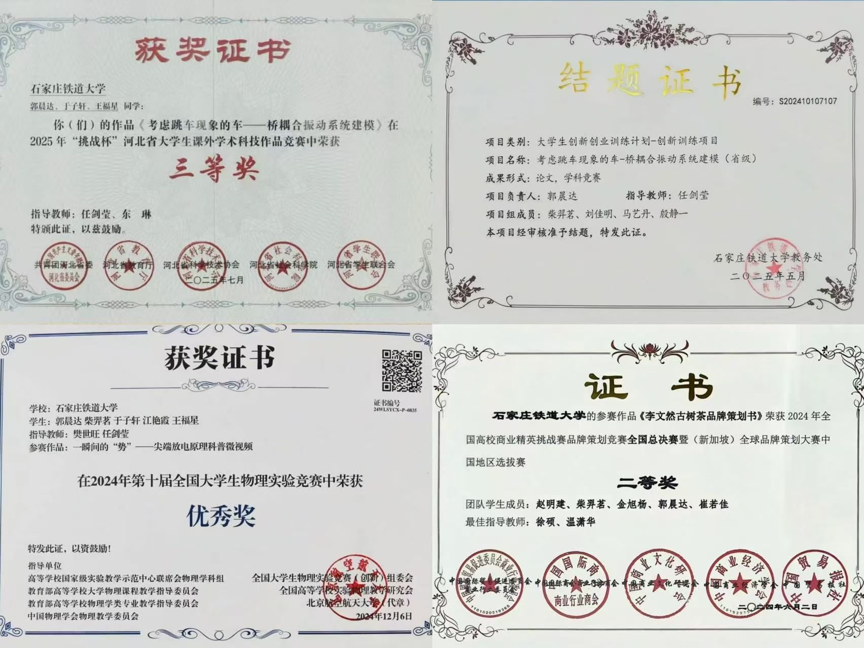 在学业基础筑牢上,我深知扎实的专业知识是一切的根基。面对理论力学、材料力学等核心课程的复杂公式与抽象概念,我坚持课前预习梳理知识框架、课上紧跟老师思路记录重点、课后通过习题巩固深化理解。同时,我利用课余时间考取计算机二级证书,熟练掌握Office、Ansys、Matlab、Auto CAD等10余种专业软件,从“理论学习者”逐步向“实践应用者”转变,这些技能后来也成为我科研与竞赛中的“有力武器”。