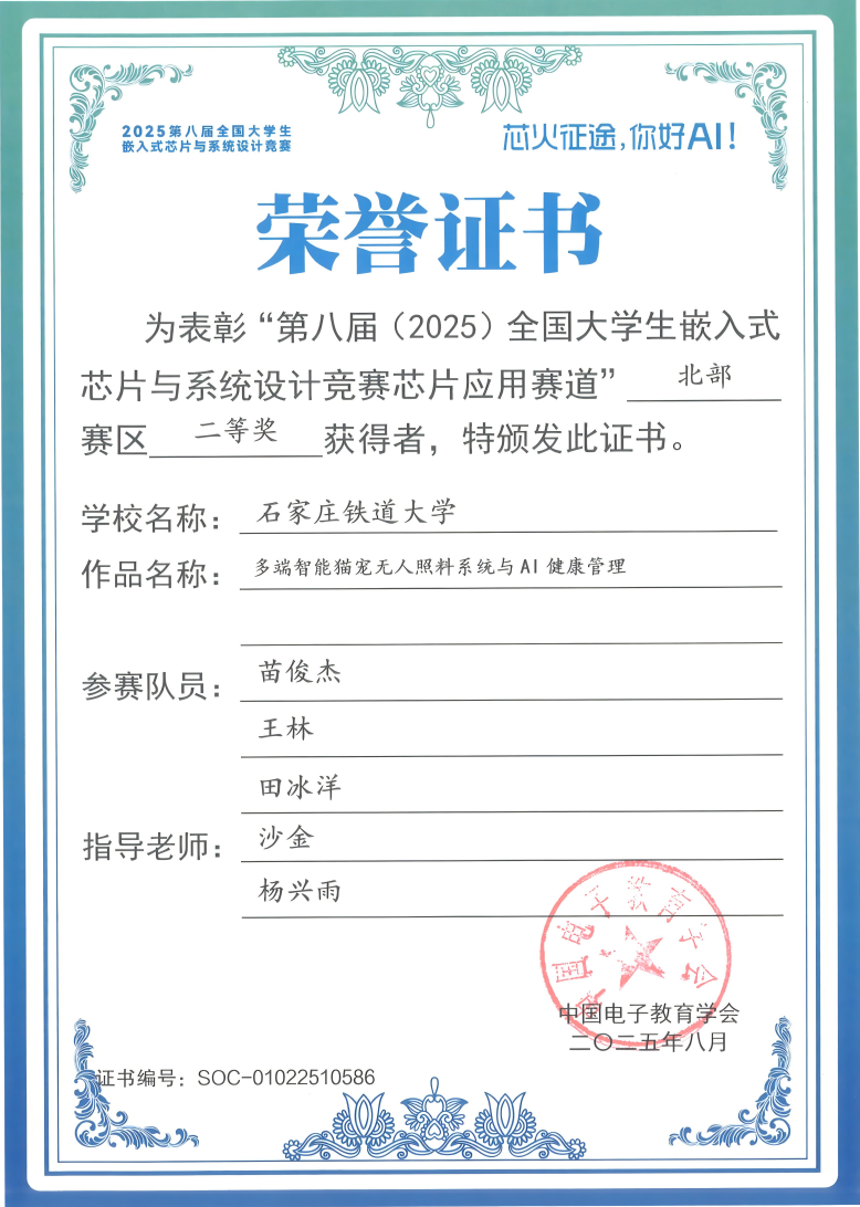 (1)第二十届全国大学生智能汽车竞赛国家二等奖(2)第九届团体程序设计天梯赛国家三等奖(3)第十五届蓝桥杯程序设计竞赛省级一等奖(4)第八届全国大学生嵌入式芯片与系统设计竞赛省级二等奖