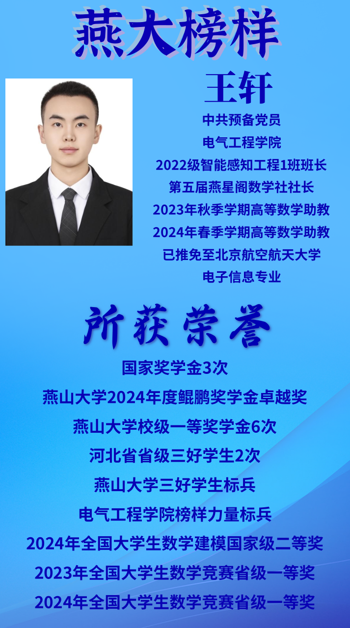 今天让我们走进“学海领航”系列,跟随电气工程学院的王轩同学,看他如何去寻觅那片独属于自己的苍穹。