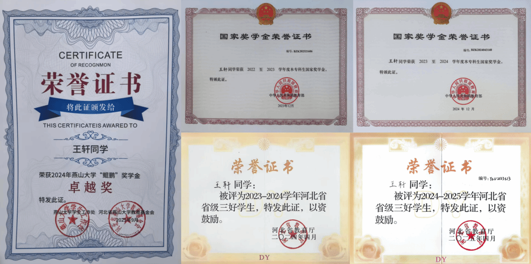 自入学以来,他善用碎片化时间,坚持高效学习,日均超过10小时。所修86门课程中,69门达90分及以上,优秀率达80%,加权平均94.54分,稳居年级第一,连续三年荣获本科生国家奖学金。