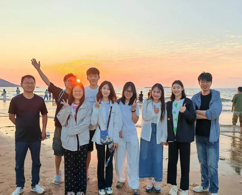 秦念周参加第七届全国大学生地质技能竞赛时与同学在海边游玩 (右二)