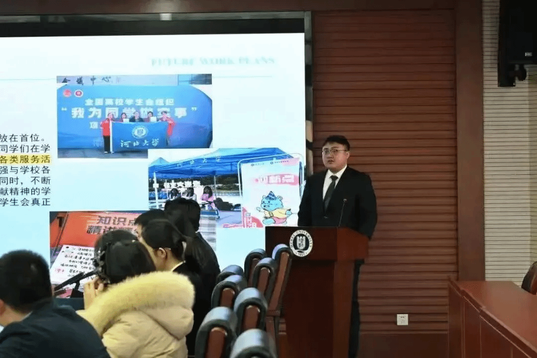 谈起学生工作,他始终享受与并肩作战的伙伴们为同学做实事的时光。“贴近同学生活,回应同学需求,解决同学难题”是他的工作方向。在学生会工作中,他与伙伴们共同打造“河马电台”“坤舆青年说”等线上思想引领品牌活动,发掘校园中的河大榜样,用镜头和文字讲述新时代青年的奋进故事;聚焦服务同学的成长需要和全面发展,他策划举办河大版“大众点评”、就业引航宣讲会、考研送温暖等一系列校园活动,解决同学的急难愁盼。在一次次为同学办实事、解难题的过程中,他真切感受着学生工作的价值与意义,也让为同学服务的初心愈发坚定。