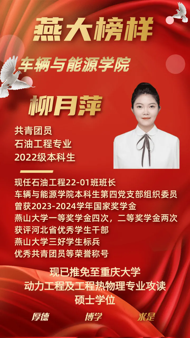 《燕大榜样》栏目第209期,让我们走进“科研菁英”系列,跟随车辆与能源学院的柳月萍同学,看她如何深耕领域,多维突破,用坚守创佳绩。