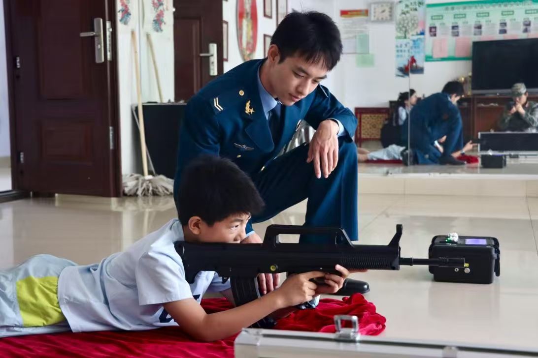 虽动作略显笨拙,但孩子们眼神专注,满是对军人的崇敬。“精准射击”环节,激光瞄准器对准电子靶,实时成绩让现场沸腾。“我中10环啦!”“我也要当神枪手!”欢声笑语里,孩子们不仅学会战术动作,更体会到军人训练的艰辛,“为国防出力”的梦想,在心中悄然发芽。