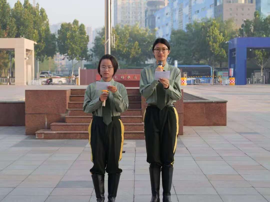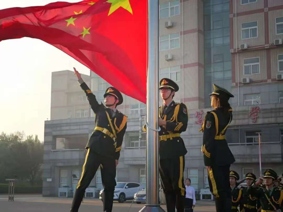 在中华人民共和国迎来76周年华诞的重要时刻,学校于10月1日清晨举行“擎旗向朝阳,共赴新征程”国庆升旗仪式。团委书记隋雪莲、校团委朱笑颜到场观礼。