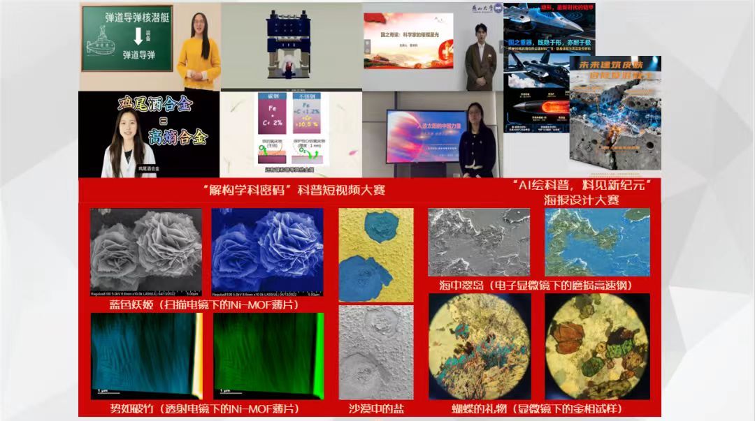 在数字化浪潮席卷的当下,科普传播也必须紧跟时代步伐,实现创新升级。学院精心设计举办科普短视频大赛、材料微结构大赛、AI海报设计大赛等,激活科普新动能。亚稳材料国家重点实验室研究生第一党支部成员们积极参赛,科普短视频大赛中化身为创意大师,将晦涩难懂的科学知识巧妙地转化为一个个生动有趣、通俗易懂的短视频,并通过燕山大学亚稳材料科普示范中心展播;材料微结构大赛中运用先进的显微技术,将那些肉眼难以察觉的微小结构以高清图像呈现出来,并加以适当色彩搭配和艺术处理,创作出兼具科学严谨性与艺术美感的佳作,让人们在欣赏艺术之美的同时,深刻感受到科学的魅力与力量;AI海报设计大赛中借助AI将科学知识转化为生动、直观且富艺术感的视觉作品,挖掘科普与艺术融合的无限可能,让科普知识“看得见、记得住、传得开”。