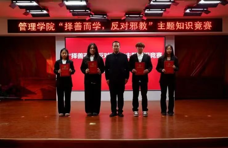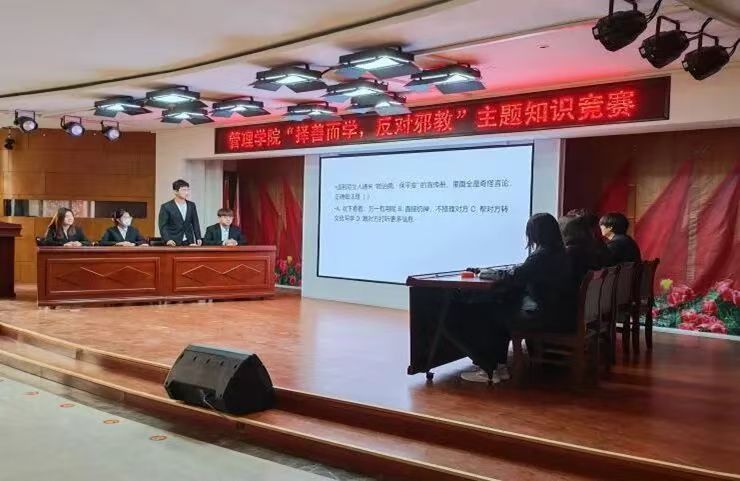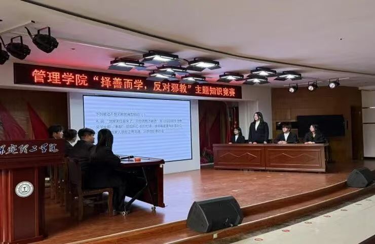 同时,管理学院举办了“择善而学,反对邪教”主题知识竞赛。竞赛内容涵盖邪教的本质特征、社会危害、防范方法等,采取抢答等多种形式,激发了学生的学习热情和参与积极性,有效检验并提升了学生对反邪教知识的掌握程度和实际应用能力。