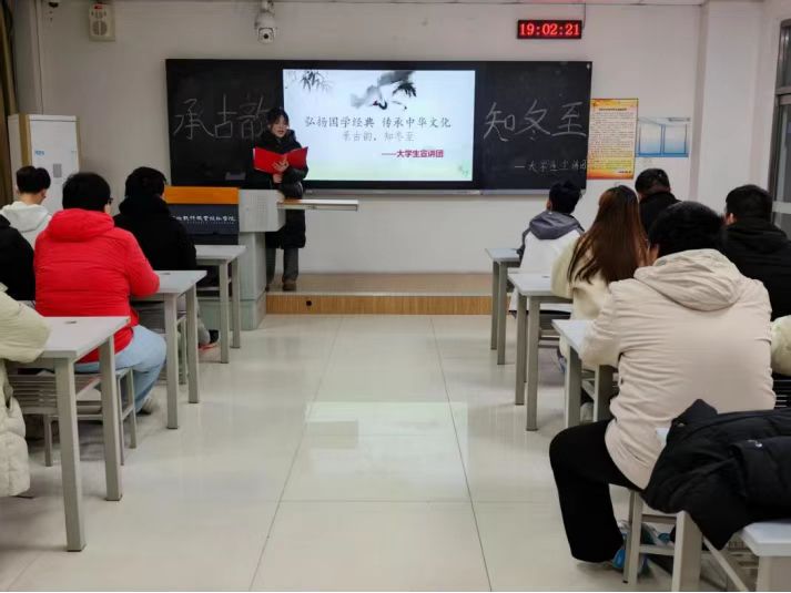 冬至,既是二十四节气中的重要节点,也承载着深厚的文化记忆与民俗情感。12月19日晚,主题学习宣讲会率先举行。活动通过知识讲授、主题研讨与互动问答相结合的方式,系统阐释冬至的文化内涵与时代价值。成员周怡然从天文历法、物候特征、历史沿革、民间习俗等多角度全面解读冬至,内容既涵盖“冬至一阳生”的自然哲学思想,也细致介绍了南北食俗、祭祀传统等民俗实践,为后续活动奠定了坚实的认知基础。