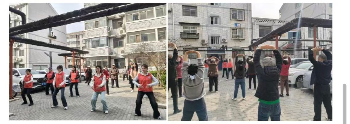 敬老爱老是中华民族的传统美德,更是雷锋精神温暖人心的生动体现。雷锋月期间,分队以“金晖助老”为主题,将中华优秀传统文化与志愿服务相结合,开展系列暖心健身养生活动,用青春陪伴守护最美“夕阳红”。志愿者们走进莲池公园,开展“拍八虚”养生教学活动,耐心细致地为老人们讲解动作要领与养生功效,手把手指导规范练习,帮助大家舒缓身心、缓解疲劳、增强体质。同时,分队还先后深入东元宝社区、市府前街社区,开展八段锦等传统健身志愿服务。志愿者们着装整齐、动作舒展,细心讲解指导,带领老年朋友们沉浸式感受传统健身文化的魅力。在一抬手、一伸展之间,既锻炼了身心,也让老人们真切感受到青年志愿者的温情关怀,为老年生活增添了健康活力与融融暖意。