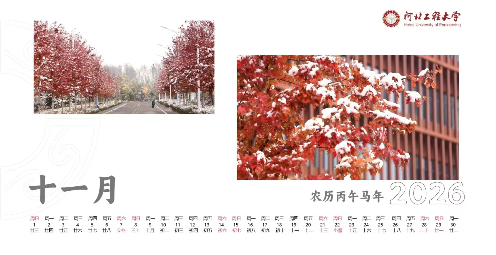 河北工程大学专属月历