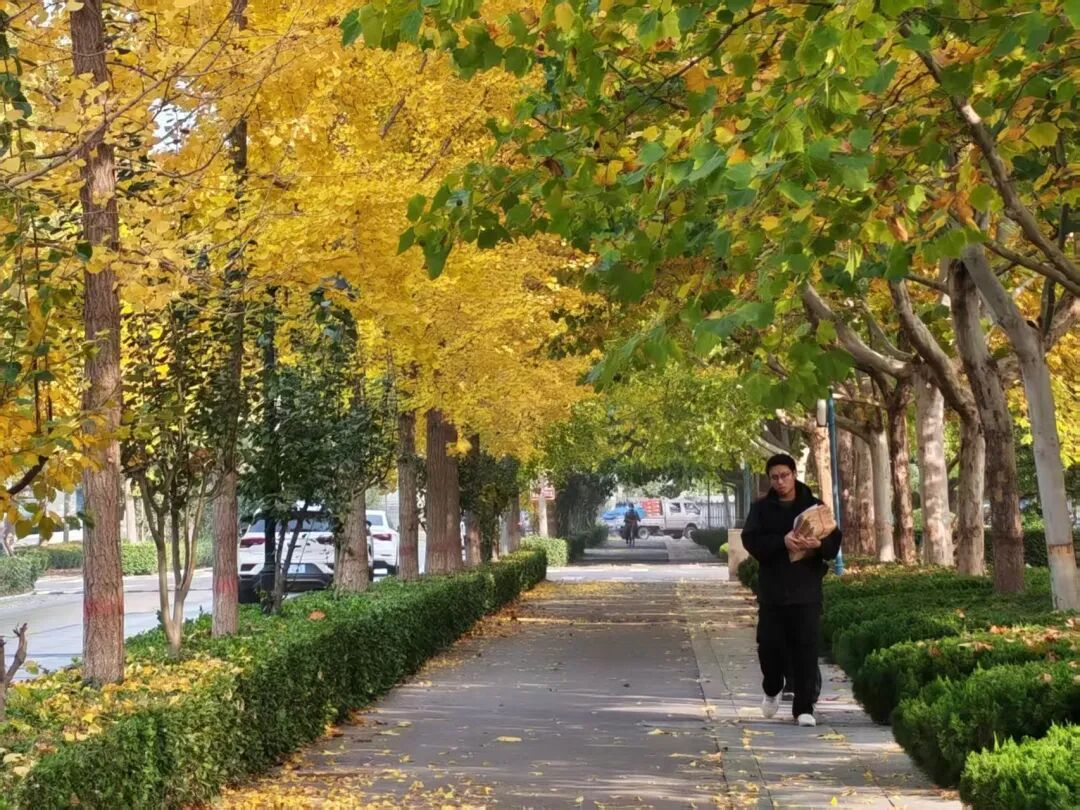 走在铺满银杏的校道上,金黄落叶簌簌飘落,脚步轻缓,风也温柔,连时光都变得浪漫又绵长。
