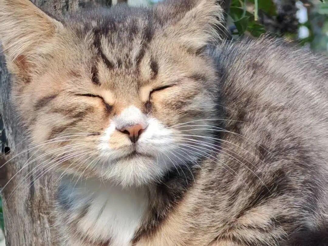 猫咪蜷在草坪晒着太阳打盹