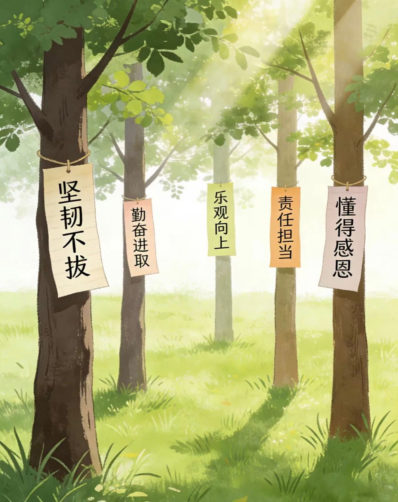 绿荫里,我亲手播下一颗勤奋进取的种子,它沐浴春光,汲取养分,正如我遨游书海,不懈追求,每一滴汗水滋养着树苗,也灌溉着我对专业精进的渴望。