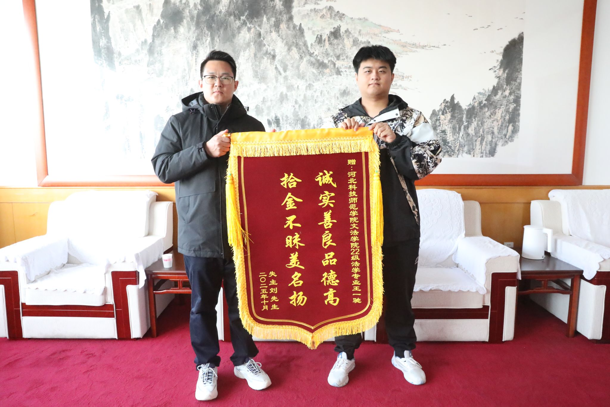 事情发生在2025年10月2日,正值国庆假期期间,王一驰在金梦海湾沙滩游玩时发现海滩上有一只遗失的手包后,四处张望,寻找失主,正在着急等待寻找失主过程中,看到两位身穿警服的民民警经过,向民警如实讲述经过后,将包交给了巡逻民警,在仅留下“科师文法学院学生王一驰”的信息后,他便悄然离去,未留下任何联系方式。经民警清点,包内共有现金5800余元、一部华为手机及多张银行卡,相关资产总价值逾10万元。失主在领回失物后激动不已,再三请求民警协助寻找这位热心学生,于是有了2025年10月15日下午,秦皇岛市海港区山东堡海防派出所山东堡海防派出所民警专程来到河北科技师范学院,“寻人送表扬”的暖心一幕。