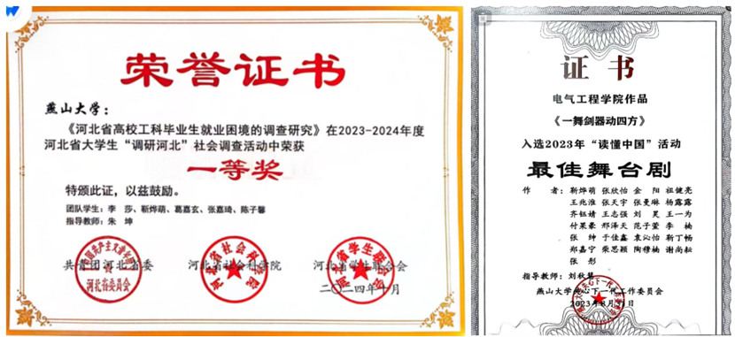 在课余生活中,她还积极参与社会实践活动,完成了《河北省高校工科毕业生就业困境的调查研究》,获得了“调研河北”省级一等奖的优秀成绩;此外,作为负责人,她导演了一部《一舞剑器动四方》的舞台剧,实地调研访谈抗美援朝的退伍老兵,荣获“读懂中国”河北省最佳微舞台剧奖。