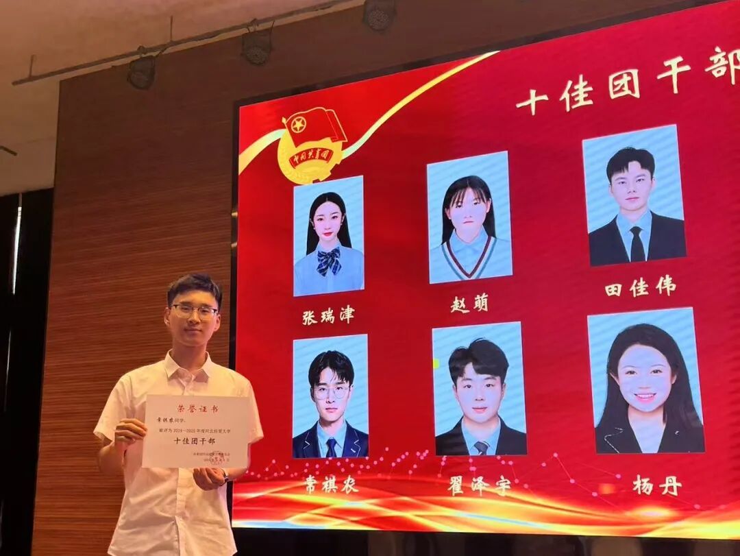 在他看来,“好学生”的“好”从不局限于成绩:品德修养上,他以尊重友善为行事准则,主动体察他人需求,用心维护和谐的集体氛围;责任意识上,无论是院团委的统筹工作,还是班级的日常事务,他都全力以赴、认真负责,从不推诿敷衍;实践能力上,他积极投身“三下乡”“返家乡”等社会实践活动,主动将课本知识转化为实际能力,让成长扎根于实践沃土。