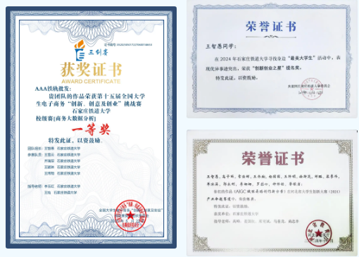 2022年以管理科学与工程类进入管理学院,分流至信息管理与信息系统专业,大一时确定保研目标,获得校级学业奖学金5次,石家庄铁道大学最美大学生提名奖。参与多项学科竞赛,总共获得8项国家级奖项,11项省部级奖项。发表论文CPCI会议论文一篇,知网国际期刊一篇。
