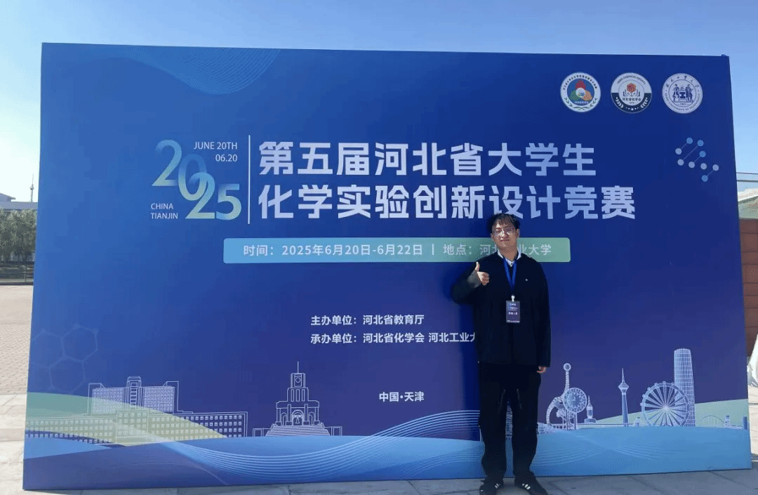 始终坚信,专业知识不仅能攻坚科研,更能传递力量。作为队长,他带领团队参加河北省大学生化学实验创新设计竞赛,围绕表面活性剂开展科普研究,不仅自主设计实验方案、搭建实验效果表征装置,还精心拍摄科普小视频,向中小学生普及化学知识。最终,团队顺利完成赛场答辩,斩获省级二等奖,让化学的魅力在科普中不断传递。而这段兼顾学业与竞赛的经历,也成了他印象最深的科研过往,当最终收获诸多奖项,稳住保研绩点的那一刻,他真切觉得所有的辛苦都有了意义。