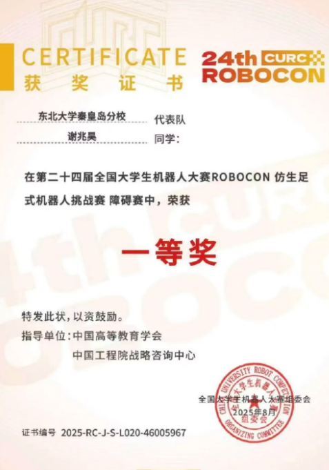 2025年全国大学生机器人大赛仿生足式机器人障碍赛国家级一等奖