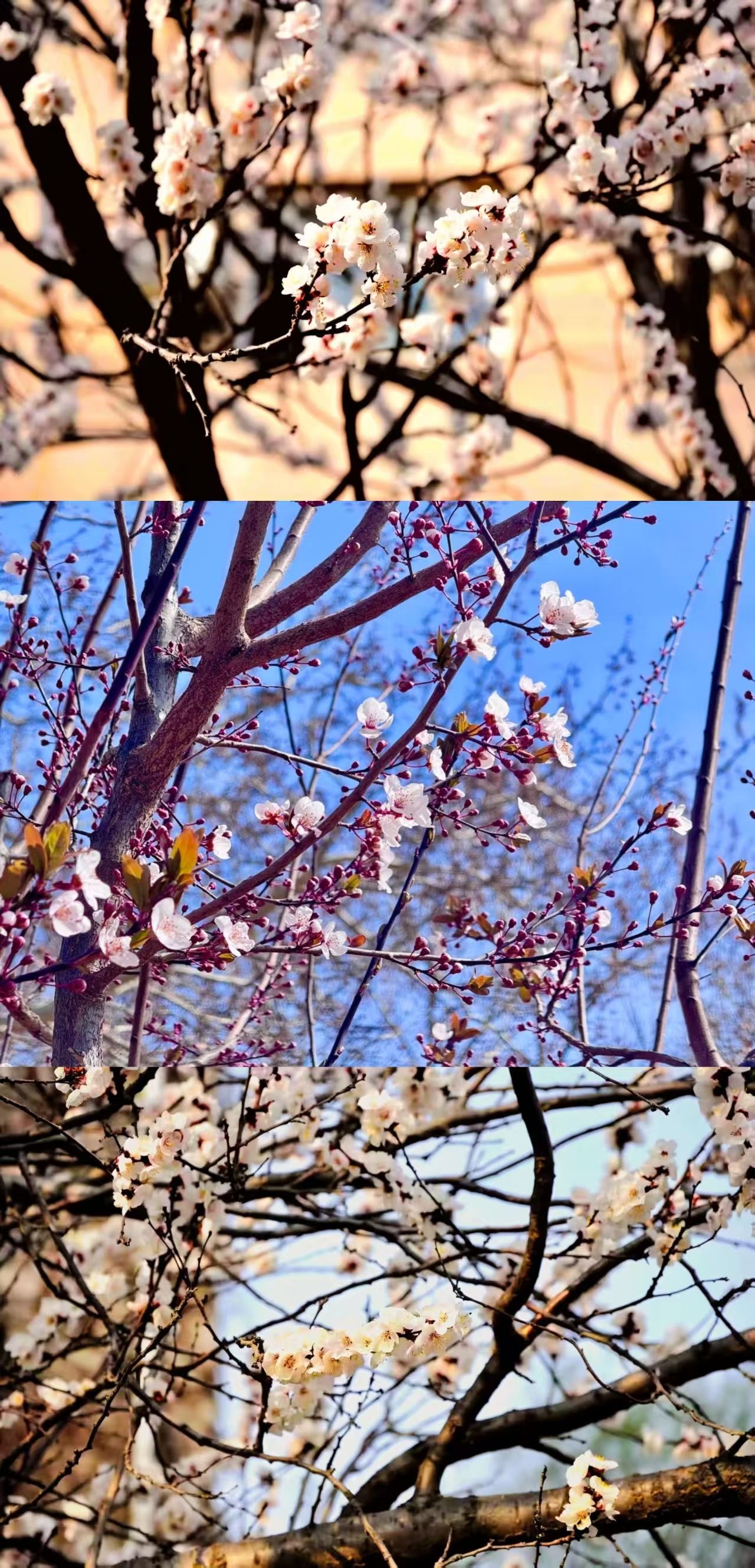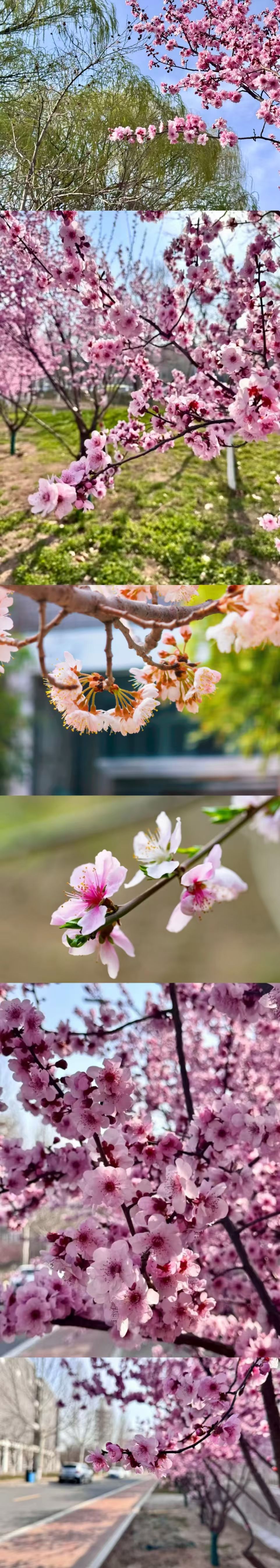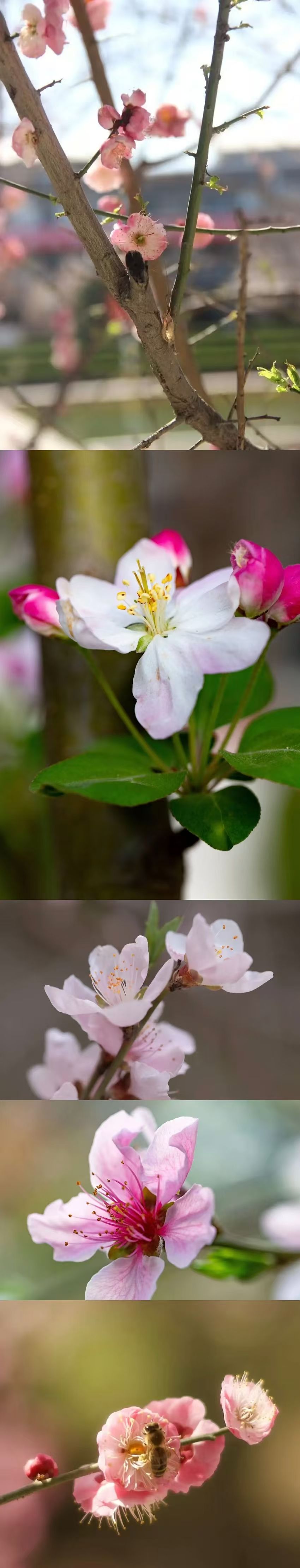 桃杏争艳,粉白相间