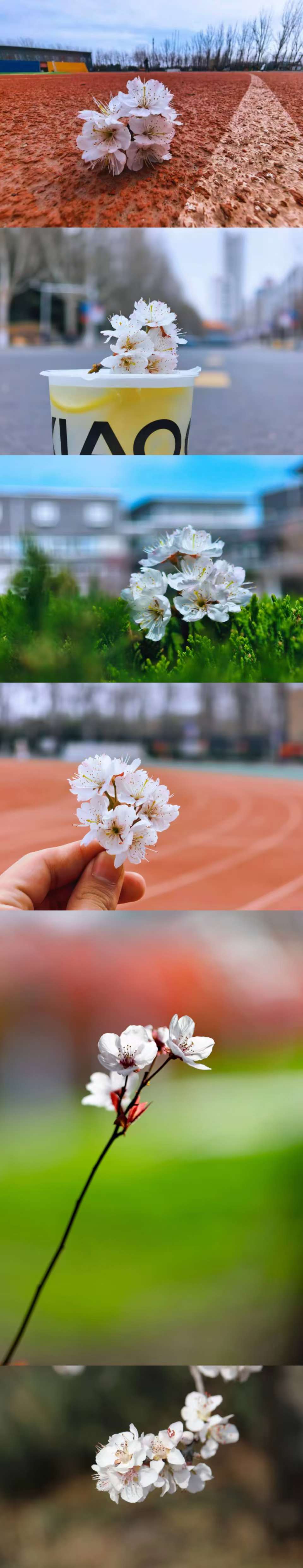 花瓣落在跑道,沾着日光的暖